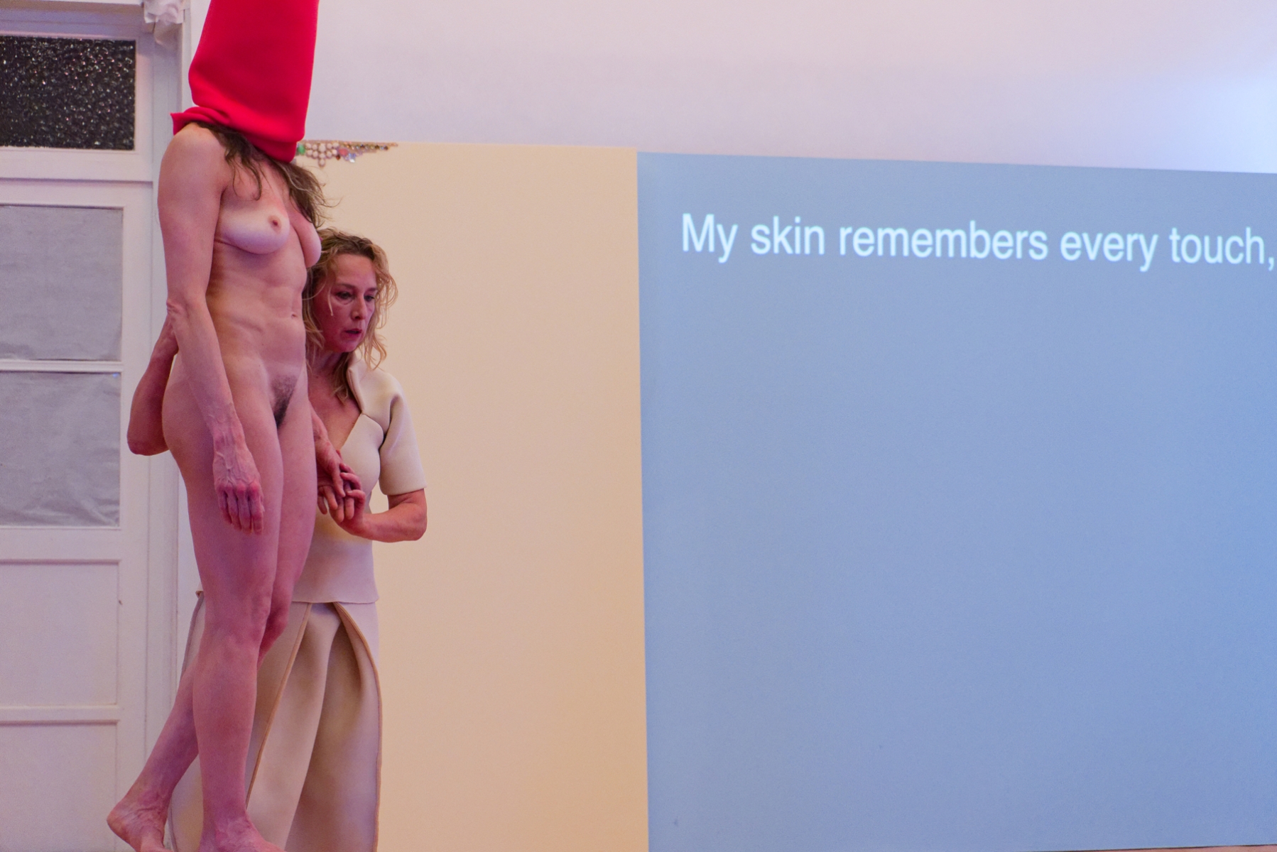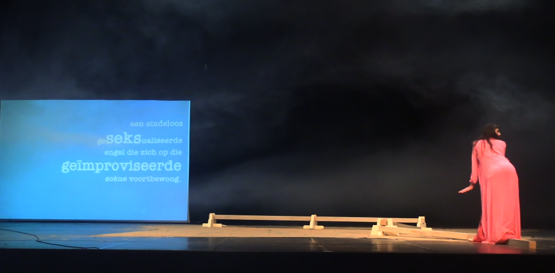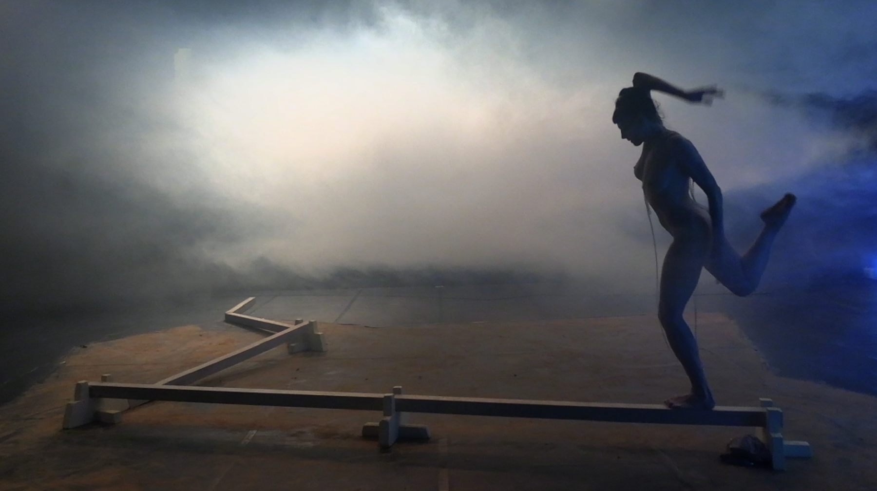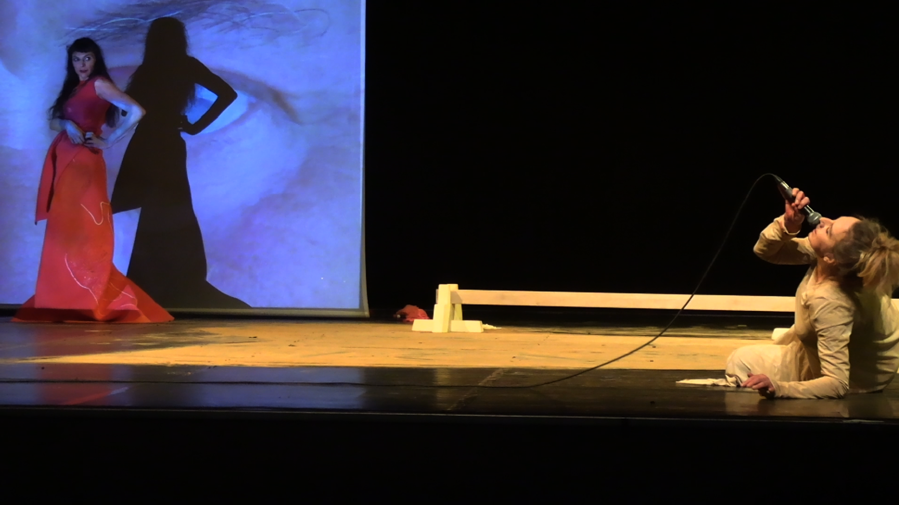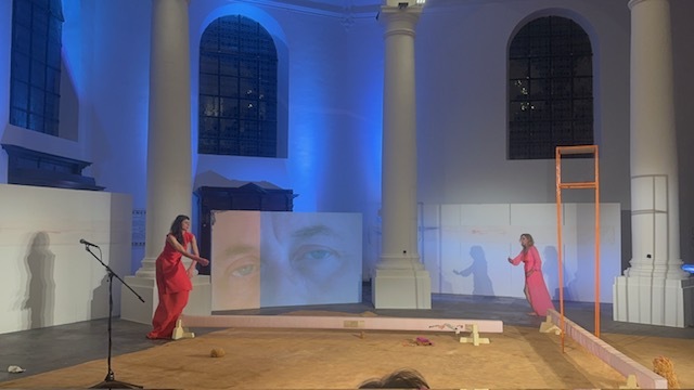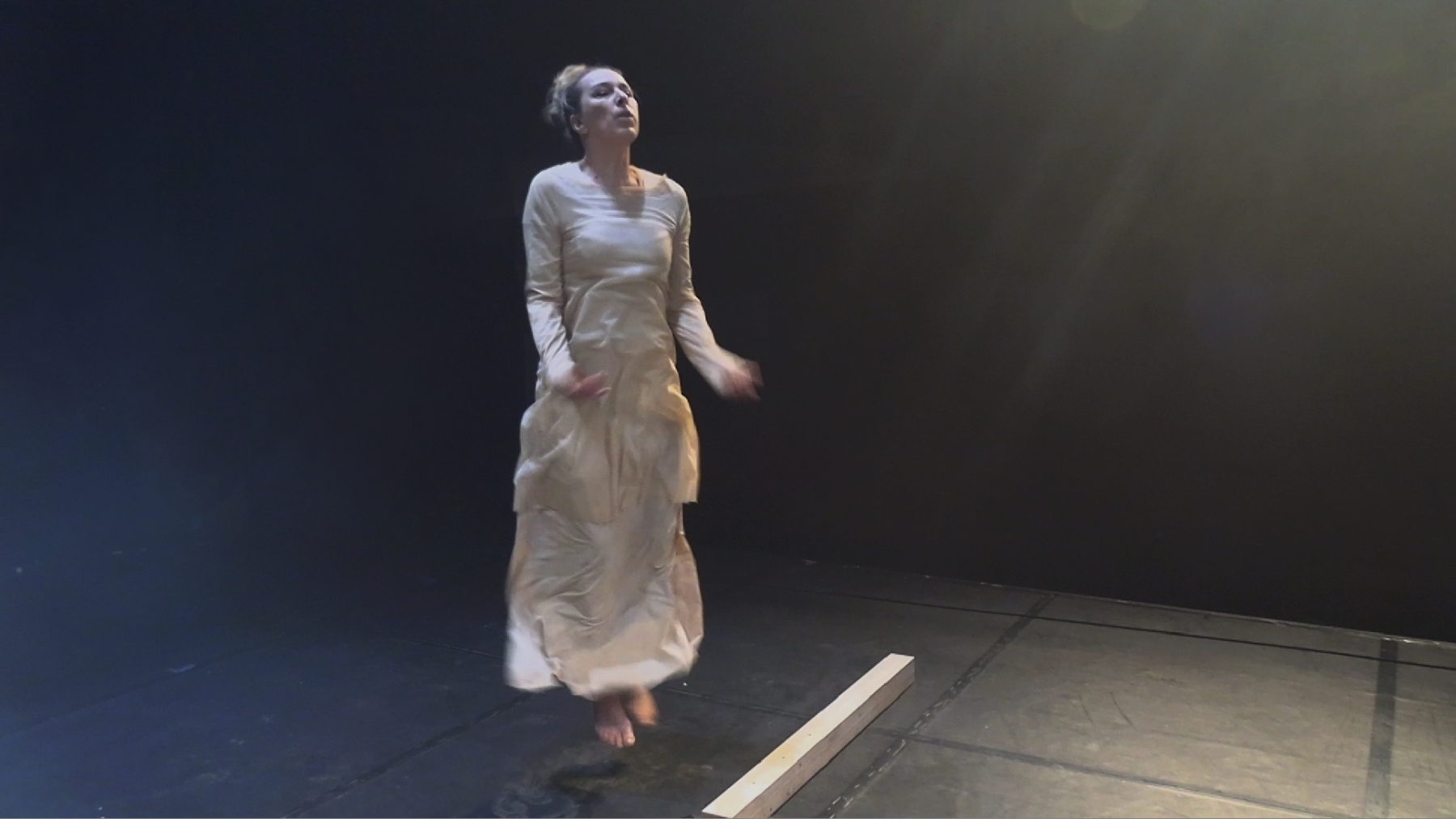 In a unique scenography, Italian dancer Angela Babuin embodies Mata Hari, flanked by Pé Vermeersch, who sings and dances her soul. A long balance beam functions both as a metaphor for the timeline leading toward Mata Hari’s futile execution and as a fragile, limiting, and challenging space for movement. The relationship between costume and nudity is a central element of the work, developed in collaboration with costume designer Anita Evenepoel. The presence of the man is addressed not in a dominant way, but through a soft, ongoing male gaze projected onto a large screen and through readings by French actor Marc Lesage.